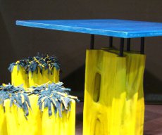Rastable et Rastabouret Ensemble Table et sièges en "Carapanauba" (bois cathédrale) provenant de Guyane. Assise en lanière de cuir. Plateau de table finition brossé, laqué. Photos